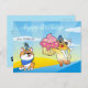 Une carte postale mignonne (anniversaire ou autre occasion) avec une scène paysagère colorée avec un chaton apportant un cupcake à son ami chien. Sympa pour l'anniversaire d'un enfant.
