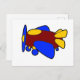 Carte Postale Caricature d'avion bleu jaune rouge pour enfants