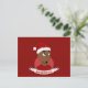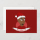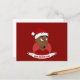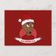 Carte postale avec illustration d'un Africain-Américain souriant heureux avec le casquette du Père Noël ; avec modèle texte modifiable ; conception des fêtes de Noël avec un arrière - plan rouge