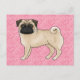 Carte Postale Carlin Fun Chien Cartoon Mops Love Heart Motif ros