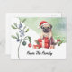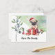 Célébrez la saison des Fêtes avec cette adorable carte postale de chien carlin "Joyeux Noël" ! Doté d'un carlin mignon, cette carte postale joyeuse capte la joie et le confort de Noël. Idéal pour les amateurs de carlins et tous ceux qui aiment une scène de vacances pleine de charme.