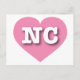 Cette carte postale est dotée d'un coeur rose vif contenant les lettres coques en haut, blanc et audacieuses NC, l'abréviation officielle de l'état de tarèle pour la Caroline du Nord. Le verso de la carte est vide, en attendant vos sentiments manuscrits ou le texte customisé.