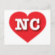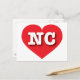 Cette carte postale est dotée d'un coeur rouge vif contenant les lettres coques en haut et en blanc NC, l'abréviation officielle de North Carolina, l'état du talon de goudron.