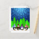 Pingouins mignons avec Festive Snowflake Design Écharpes et Casquettes chantant des cantiques sur neige Noël Nuit Illustration Dessin Carte postale
