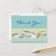Une carte de remerciement éditable avec des lettres cursives et un carrelage vintage représentant des mouettes volant au-dessus d'une mer océanique calme, dans des teintes pastel sur un fond sarcelle océanique à l'avant, et votre adresse de retour personnalisée au dos. L'art a été restauré et reproduit à partir d'un motif de carrelage antique.