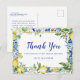Carte Postale Carrelage Mosaïque Bleu Fleur Blanche Citron Merci