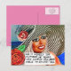 Très jolie carte du Lapin toujours pressé d'Alice . Belle qualité de l'impression en rose pastel.