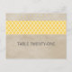Elégante et sophistiquée Rustic Quatrefoil Numéro de table Carte postale avec un look vintage texturé arrière - plan et une bordure motif moderne en jaune. Facile à customiser, il suffit d'ajouter le ou les numéros de table appropriés dans le champ de texte fourni. Cliquez sur "Customiser" pour trouver d'autres options de personnalisation.