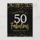 Carte postale d'invitation anniversaire cinquante ans et merveilleux élégante et moderne. La conception présente une calligraphie cinquante et merveilleux sur fond noir et confettis dorés.
