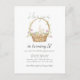 Carton d'invitation d'anniversaire avec un lapin aquarelle dans un panier avec des tulipes et des œufs.