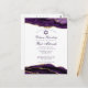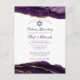 Une décoration en agate violette et or élégante orne le côté de ce carton d'invitation pour une cérémonie de Bat Mitzvah chic. Le nom de votre fille est écrit en belle écriture cursive sous l'étoile de David. Un design moderne et tendance pour une jeune fille juive chic appelée au Torah.