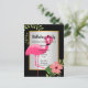 CARTON D'INVITATION TOUTES OCCASIONS FÊTE D'ANNIVERSAIRE FLAMANT ROSE BOTANIQUE MODERNE VERT ET HIBISCUS NOIR
