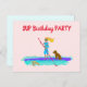 Carton d'invitation pour l'anniversaire d'une adolescente avec un thème de stand up paddle. La conception illustrée montre une fille faisant du paddle avec son chien à bord, tandis qu'une tortue de mer nage à côté. Personnalisez le texte du modèle sur le recto et le verso pour une fête d'embarquement. L'adresse postale peut être ajoutée séparément à chaque invitation de fête.