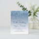 Cette carte d'invitation d'anniversaire de 50 ans tendance présente une bordure scintillante à gouttes de paillettes bleues et un fond ombré. Les mots "50e Anniversaire" et le nom de l'invité d'honneur apparaissent dans un script manuscrit bleu décontracté, le reste du texte personnalisable étant en police sans empattement bleue. (REMARQUE : les enveloppes ne sont pas incluses automatiquement avec cette invitation économique. Pour ajouter des enveloppes à votre commande, veuillez utiliser le menu déroulant "Enveloppes".)