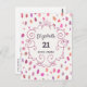 Carte Postale Carton d'invitation rose mignon pour un 21e annive
