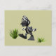 Un mignon dessin animé en noir et blanc rayé zèbre canard de dessin animé court joyeusement à travers l'herbe.