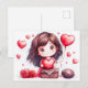 Carte Postale Cartoon Girl Holding Heart Romantic Valentine’s Da