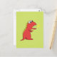 Carte postale de dinosaure mignonne et brillante avec l'illustration colorée d'un dinosaure T-Rex caricaturé rouge avec une brasse ardente sur arrière - plan vert. Cette carte postale mignonne aux couleurs vives convient aussi bien aux enfants qu'aux adultes. :)