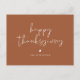 Cette carte de vœux de Thanksgiving présente une police manuscrite audacieuse, un fond festif en terre cuite et un design moderne minimaliste. Le verso facile de la carte postale permet d'ajouter facilement un message spécial à vos proches et d'expédier cette carte de vœux sans enveloppe.