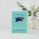Casquette de graduation bleue en arrière - plan sage et cadre blanc - carte de félicitations design moderne en français pour les diplômes du secondaire - facile de customiser cette carte postale maintenant avec un nom .Vous pouvez ajouter plus de texte /photo etc.