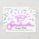 Carte postale de fin d'études, avec un casquette de graduation en néon rose et des arrosages pastel. Convient pour le diplômé de l'université. Peut être utilisé comme un carte de remerciements de graduation ou une grande invitation de fête.