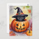 Carte Postale Casquette de sorcière Citrouille Black Kitten Hall