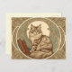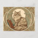 Carte Postale cat and books framed with geometrical ornament