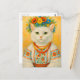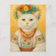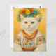 Carte postale Cat blanc ukrainienne Flower Wreath pour le post-croisement