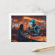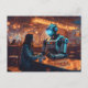 A woman and a robot catch up with each others' lives over coffee at a cafe. Let an old friend know you are thinking about them with this charming, sci-fi themed postcard.