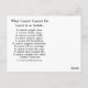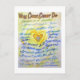 Carte postale inspirante d'art du cancer avec la peinture d'ange coeur bleu et or. L'art comprend le poème "Ce que le cancer ne peut pas faire". Le poème complet sur le cancer est également au verso de la carte. Customisez les cartes pour notes du poème sur le cancer, angel, pour faire des cadeaux personnalisés contre le cancer. Les cartes postales sont également bonnes pour les promenades en équipe contre le cancer ou d'autres événements de sensibilisation au cancer ou de collecte de fonds. Ce que le cancer ne peut pas faire Le cancer est si limité... Cela ne peut pas paralyser l'amour. Elle ne peut briser l'espoir. Elle ne peut pas corroder la foi. Il ne peut pas détruire la paix. Il ne peut pas tuer l'amitié. Il ne peut pas supprimer les souvenirs. Il ne peut pas réduire au silence le courage. Il ne peut pas envahir l'âme. Il ne peut voler la vie éternelle. Il ne peut pas conquérir l'esprit. -Auteur inconnu