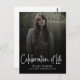 Cette carte postale photo de funérailles moderne va au-delà des formats traditionnels, vous permettant de créer un hommage significatif et personnalisé. Le scénario de 'Célébration de la vie' est une couche sur la photo et le dégradé noir.