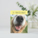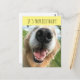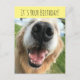 Envoyez des vœux d'anniversaire spéciaux avec cette carte postale adorable ! Le design présente une photographie d'un chien retriever d'or heureux avec un grand sourire sur son visage. Le texte personnalisable indique "C'est votre anniversaire !" et "Célébrons."