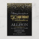 Un design d'anniversaire élégant, approprié pour les femmes et les hommes. Design doré avec lettrage créatif, fond noir. Moyen parfait pour annoncer la célébration de l'anniversaire. Veuillez personnaliser le texte !!! Les éléments décoratifs peuvent être redimensionnés en cliquant sur le bouton personnalisé.