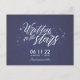 Thème céleste enregistrer la carte postale date dans un ciel étoilé bleu "Ecrit dans les étoiles" design typographique. Personnalisez avec vos détails mariages. L'arrière de la carte postale est personnalisée avec votre adresse de retour, votre date de mariage et un message personnalisé. Envoyez un courriel à vos amis et à votre famille pour leur demander de réserver votre date de mariage.
