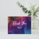 Carte de remerciement avec un motif cool avec une ambiance des années 60. Cercles et tourbillons colorés de l'arc-en-ciel.