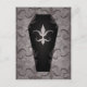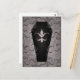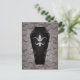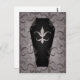 Une carte postale avec un cercueil noir gothique élégant avec un motif de fond damassé grunge dessus. Écrivez votre vœu d'Halloween au dos.