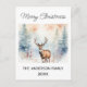 Carte Postale Cerf en forêt neigeuse Arbres de Noël Aquarelle