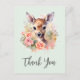 Carte postale Merci avec une belle illustration représentant un cerf mignon. Entouré de roses roses et de fleurs roses.