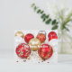 Ornements de Noël arborés en rouge, blanc et or. Customisez avec votre nom d'entreprise sur le devant. Le dos est un modèle de certificat-cadeau.