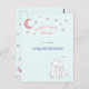 NouvelleAlléeParc - Carte postale pour un nouveau-né garçon, avec deux lapins mignons, assis et regardant les étoiles et la lune, et une citation d'une douce comptine : 'Twinkle, twinkle little star’, sur un fond bleu bébé.