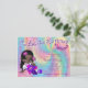 Des spirales arc-en-ciel colorées et des licornes avec 3 petits bébés Cutie Pie à choisir parmi pour féliciter les nouveaux parents avec leur petite fille.