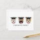 Illustration de trois chiots bouledogues français portant des chapeaux de diplômés.