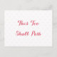 "Cela aussi passera" Une belle carte personnalisée, élégante et encourageante, aux bonnes vibrations, à l'énergie positive, pour un rétablissement, ou pour la chance, avec votre note personnalisée, message ou salutations au dos en typographie élégante en faux or. Une belle carte postale pour donner de la force, de la positivité, de l'optimisme et de l'encouragement aux amis, à la famille, à vos proches, aux êtres chers qui traversent une période difficile, des moments difficiles dans leur vie, liés à l'argent, la perte d'emploi, la santé, les factures d'hôpital, les réclamations d'assurance, les batailles juridiques, le divorce ou les calamités naturelles, typhon, ouragan, tremblement de terre ou pandémie comme le coronavirus / covid-19.