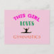 Coloré rose, vert, orange gymnaste féminine en écart facial au-dessus de la poutre ou du sol, avec les mots "Cette fille aime la gymnastique" citation. > Conception d'art simple et minimaliste pour la gymnaste fille ou l'appréciation de l'entraîneur de gymnastique féminine. > Personnalisez-le ! Ajoutez un nom personnalisé, une photo ou un texte.