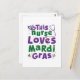 Cette infirmière aime le design Mardi Gras est un costume mignon pour RN, LPN, ou infirmière praticienne pour célébrer Carnival, Fat Tuesday ou Shrove Tuesday. Le design en or, vert et violet est parfait pour une fête Mardi Gras ou une parade.