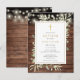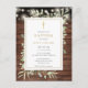 Doté de jolies lampes à cordes et de délicats feuilles de verdure aquarelle sur un arrière - plan de panneaux de bois rustique et un élégant crucifix en or, ce baptême ou invitation à la baptême peut être personnalisé avec vos informations spéciales. Conçu par Thisisnotme©
