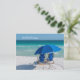Carte de prompt rétablissement représentant un couple de chaises longues et un parasol pour que quelqu'un puisse les occuper sur la plage de sable blanc de Destin, en Floride. Vous cherchez d'autres produits ? Visitez ma boutique : http://www.zazzle.com/timelessmomentsphtgy