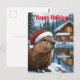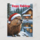 Carte Postale Chalet de la forêt lac Noël Castor Aquarelle