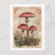 Cette carte postale présente une illustration vintage de champignons rouges.