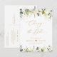 Modèle d'annonce de report de date - Carte postale florale de rose verte et blanche avec écriture dorée Changement de date.